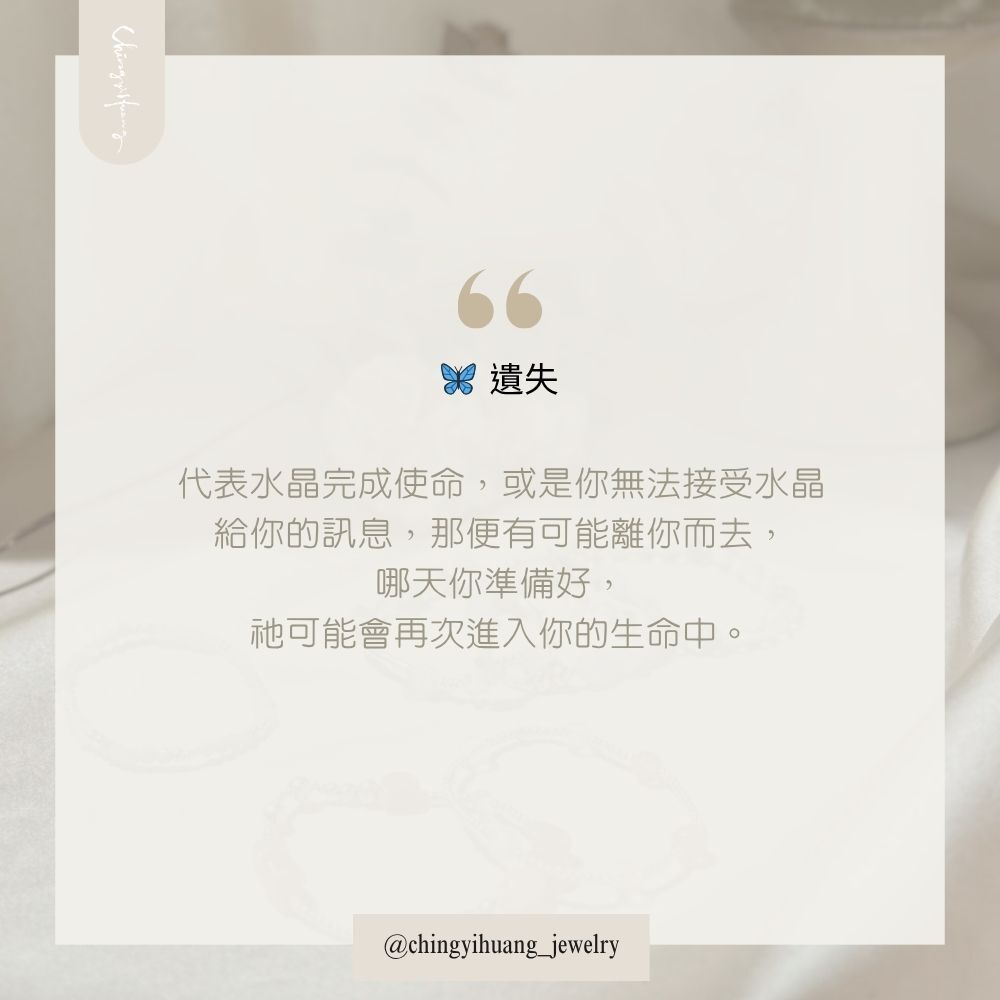 🦋4.遺失:代表水晶完成使命,或是你無法接受水晶給你的訊息,那便有可能離你而去,哪天你準備好,祂可能會再次進入你的生命中。