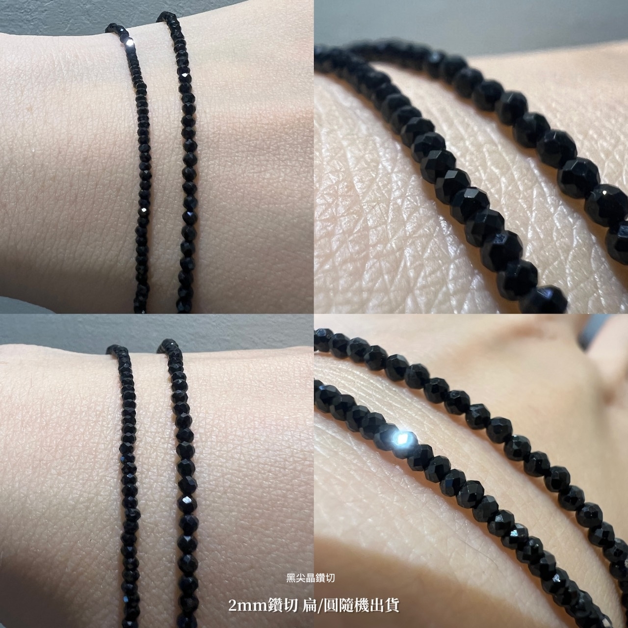 🔳 黑尖晶 Black Spinel 2mm 銀珠為6mm/4mm