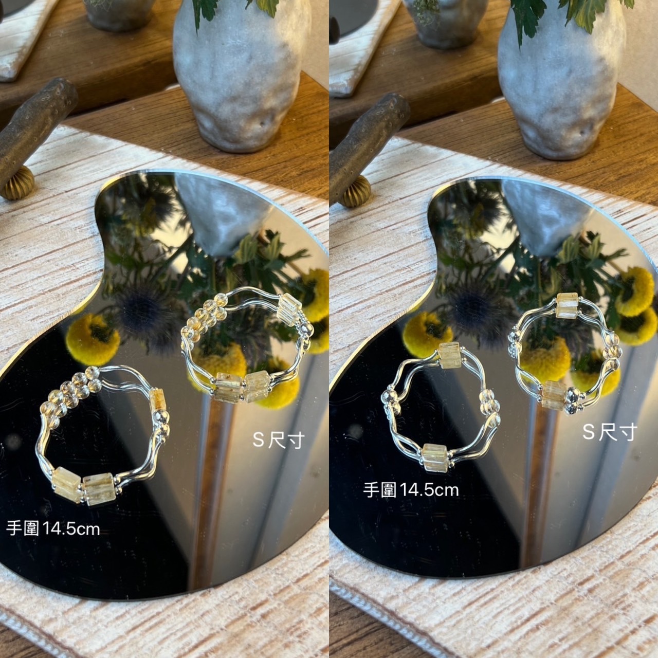 🔳首圖為S尺寸,因為銀管為固定尺寸,14.5cm手圍以下的尺寸會與設計有較大區別。可先與客服討論。