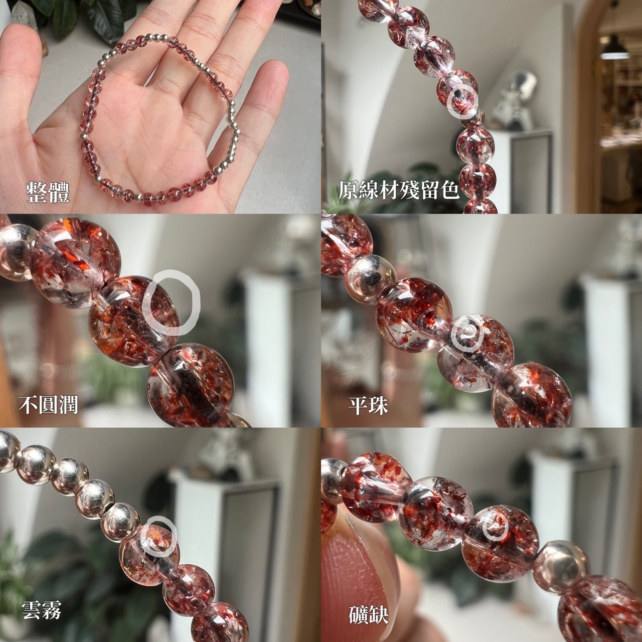 ❤️ 因為超七草莓晶內裏的包裹體導致都有以下礦缺/平珠狀況,每一條都會挑選肉眼不明顯的製作,但還是有會幾顆有上述說的狀況,可以接受再下單