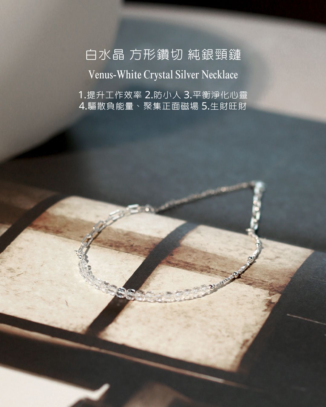 CYH-Venus-白水晶 方形鑽切 純銀 扣環式 頸鏈(提升工作效率/驅散負能量與防小人/聚集正面磁場/釋放內心壓力)