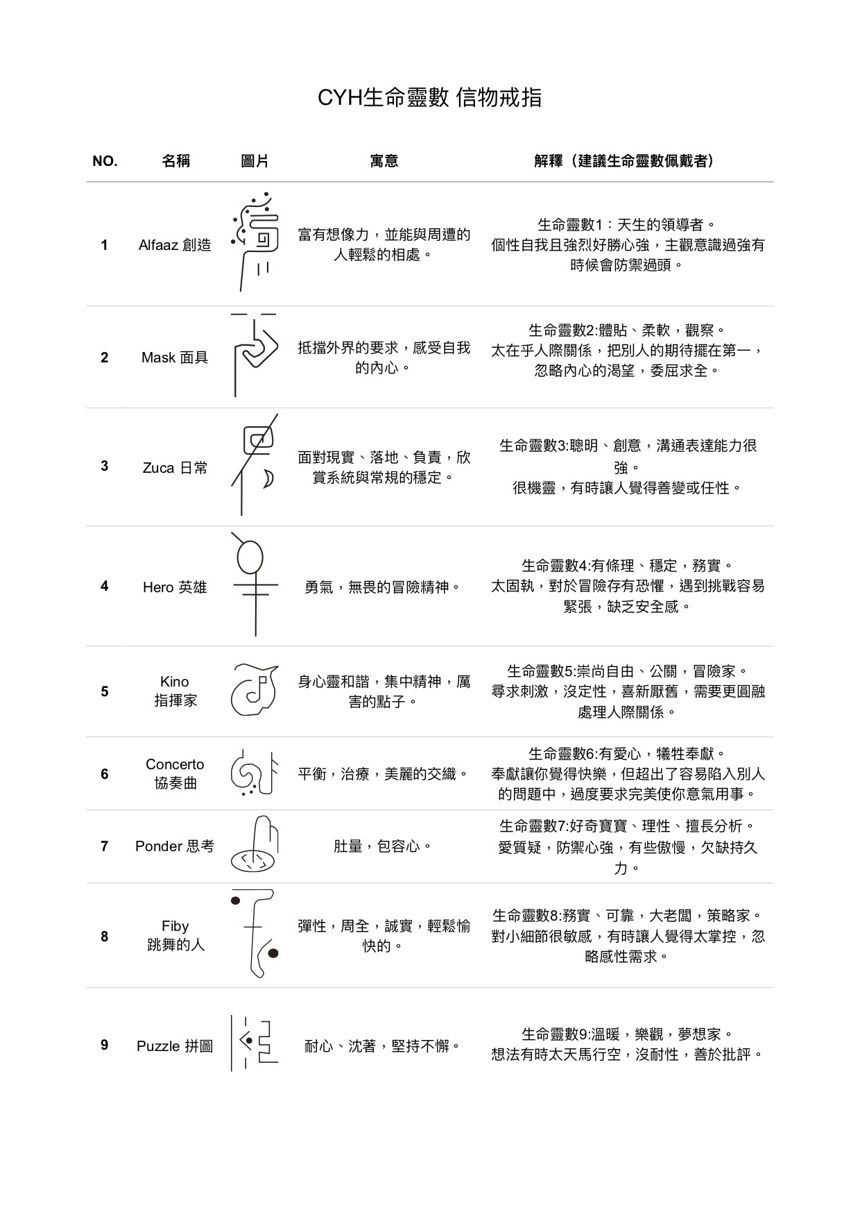 我們製作出印鑑戒指的原型,對照生命靈數設計了9種不同的圖樣,每一種圖樣都擁有不同的寓意與個性。